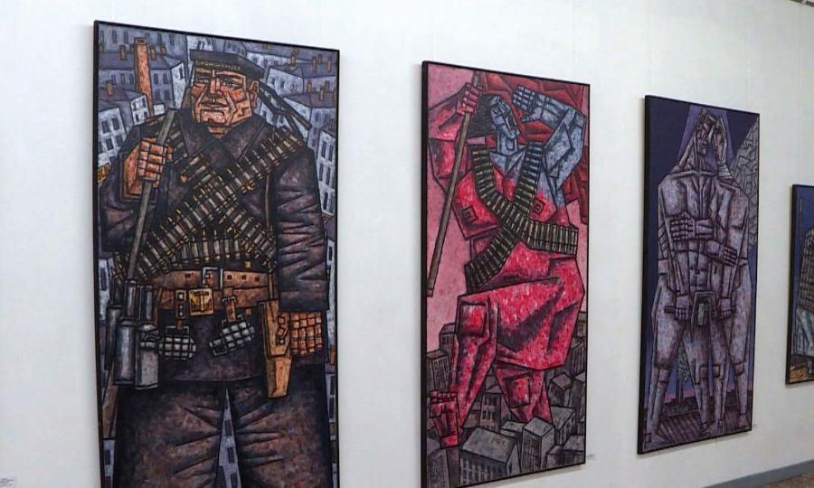 Первые лица Советского Союза, пионеры и рабочие, соловецкие заключенные. Авторы не делят героев на хороших и плохих, зато четко делят мир на близкий сердцу социализм и противоречащий капитализм. На выставке чуть больше сотни работ -свежие, с актуальным переосмыслением переворота. Большая часть — авторства Трубиных, но есть и картины коллег по цеху.