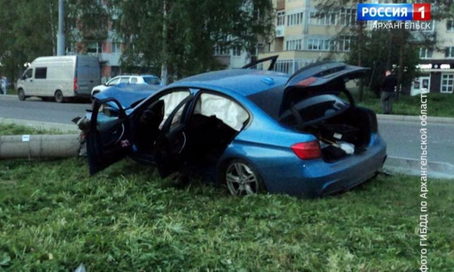 Водитель и пассажир госпитализированы. Сообщества Архангельска этой ночью заполнили фотографии ещё одной аварии. На пересечении улицы Воскресенской и Обводного канала водитель не справился с управлением немецкого седана и въехал в бетонный столб. Мужчина 1996 года рождения - в больнице.