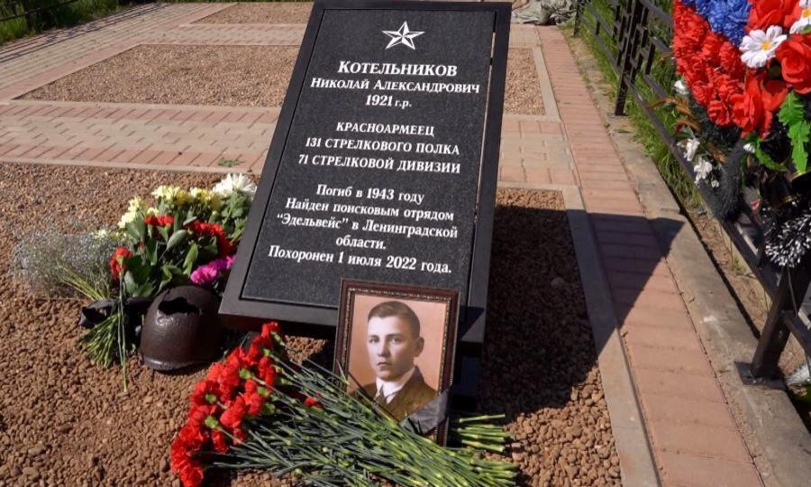 Николая Котельникова удалось опознать по знаку-медальону. Из Ленинградской области останки перевезли на родину — в Вологду. В траурной церемонии приняли участие представители поморских поисковых отрядов и Архангельского областного центра «Патриот».
