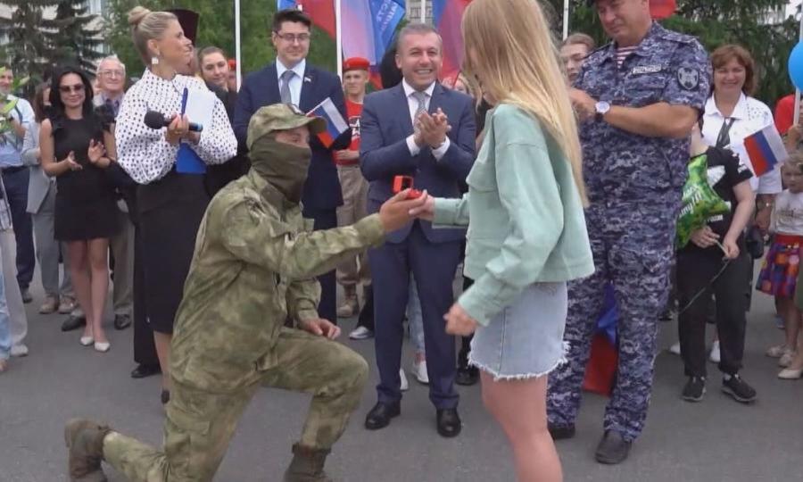 Напомним, молодой человек сделал предложение своей девушке Виктории прямо на железнодорожном вокзале Архангельска, перед строем боевых товарищей.