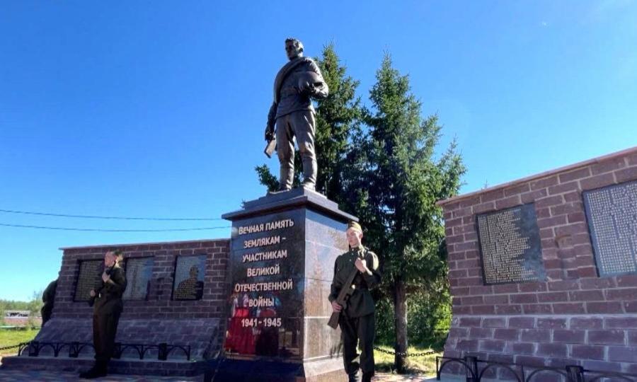 Монумент находится в поселке Харута. В центре композиции изображен солдат. Его фигура отлита из бронзы. По обеим сторонам от постамента установлены стелы, на которых высечен длинный список имен тех, кто сражался за Родину.