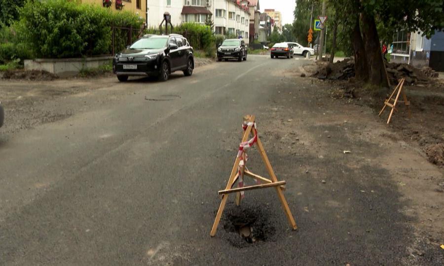 Улица Серафимовича. Здесь уложен первый слой асфальта. Ремонт этого проезда жители ждали долго, поэтому и за его ходом следят пристально. Недавно в администрацию Архангельска обратились общественники из Народного фронта. Они обратили внимание на сохранность ливневой канализации.