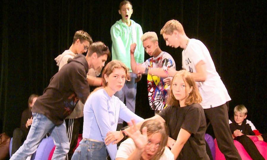 Позади 10 дней увлекательных занятий под руководством актёров Архангельского драматического театра. Ребята изучали актерское мастерство, сценическую речь и движение. И вот пришла пора показать, чему научились. Вначале разминка. Один из элементов курса — «оживление предметов». Конечно, за десять дней изучить все тонкости актерской профессии невозможно. Самое главное, занятия помогли ребятам «раскрыться».