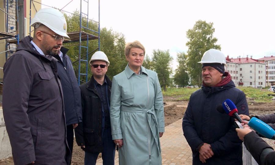 Рабочая поездка председателя Архангельского областного Собрания началась в Новодвинске. На Добровольского, 9 строят дом по программе переселения из ветхого и аварийного жилья. Квартиры ждут 74 семьи.