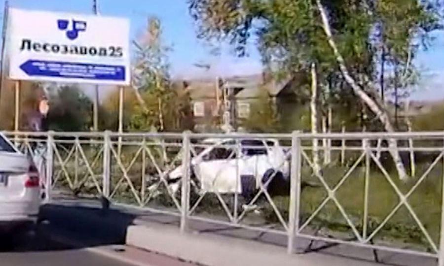 Там легковушка столкнулась с КАМАЗом, после отлетела в движущийся «Хендай Крета» и ушла за ограждения. По словам очевидцев, лихач уходил от сотрудников ДПС. Водителя госпитализировали.
