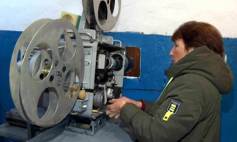 Вес одной кинобанки с бобинами — килограммов 12, поэтому деревенские киномеханики приспособили коромысло. Татьяна Ломтева и Галина Антонова продемонстрировали как в 70-е годы они носили эти кинотяжести. Путь не близкий — от почты до клуба, где и катили кино. В день по два сеанса — детский и взрослый, билеты по 5 и 20 копеек. В зале аншлаг.