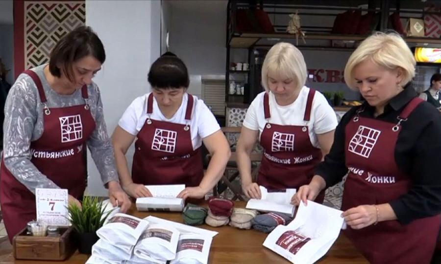 Центр общения «Устьянское гостеприимство» — тоже инициатива Ирины Захаровой. Здесь рукодельницы собираются вместе и вяжут шерстяные носки. Сюда же можно приносить готовые изделия. Их передадут военнослужащим.