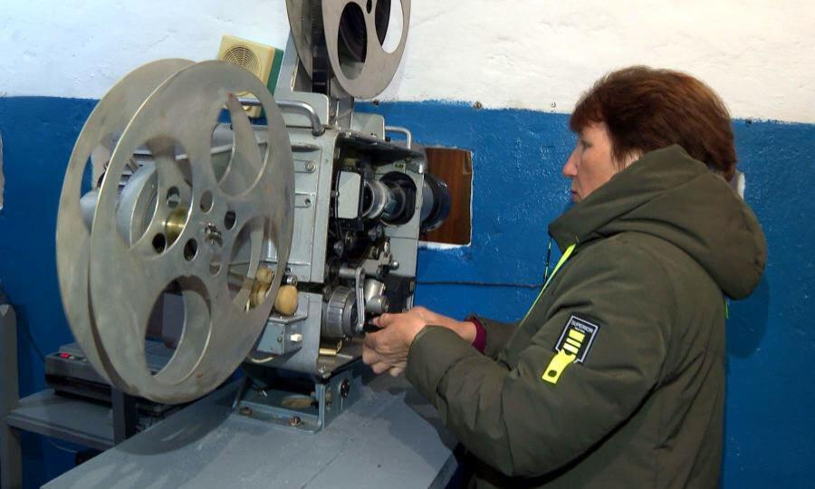 Вес одной такой кинобанки с бобинами килограммов 12, поэтому деревенские киномеханики приспособили коромысло. Татьяна Ломтева и Галина Антонова продемонстрировали как в 70-е годы они носили эти кинотяжести. Путь не близкий — от почты до клуба, где и катили кино. В день по два сеанса — детский и взрослый, билеты по 5 и 20 копеек. В зале аншлаг.
