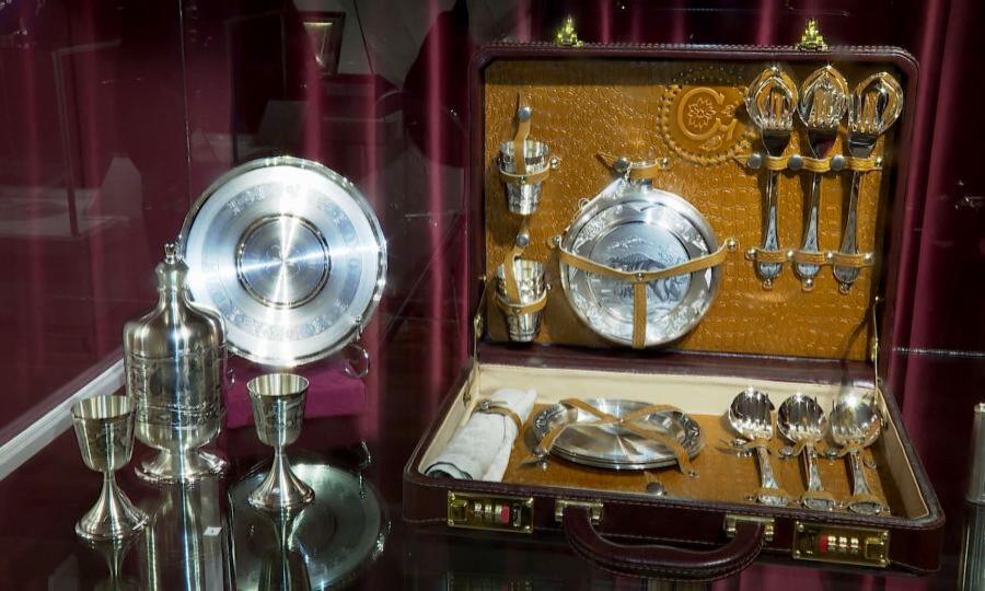 Столовые гарнитуры, ювелирные украшения, сувениры и многое другое. Всего здесь можно увидеть более 200 предметов ручной работы. Все это создано заслуженными художниками России.