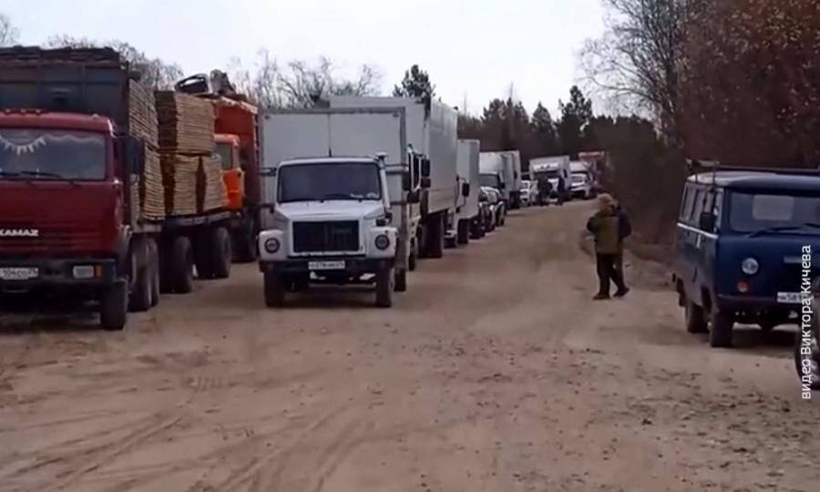 По словам местных жителей, катер с баржой не справляется с большим количеством машин и большегрузов. Такая ситуация наблюдается ежегодно весной и осенью десятки лет.