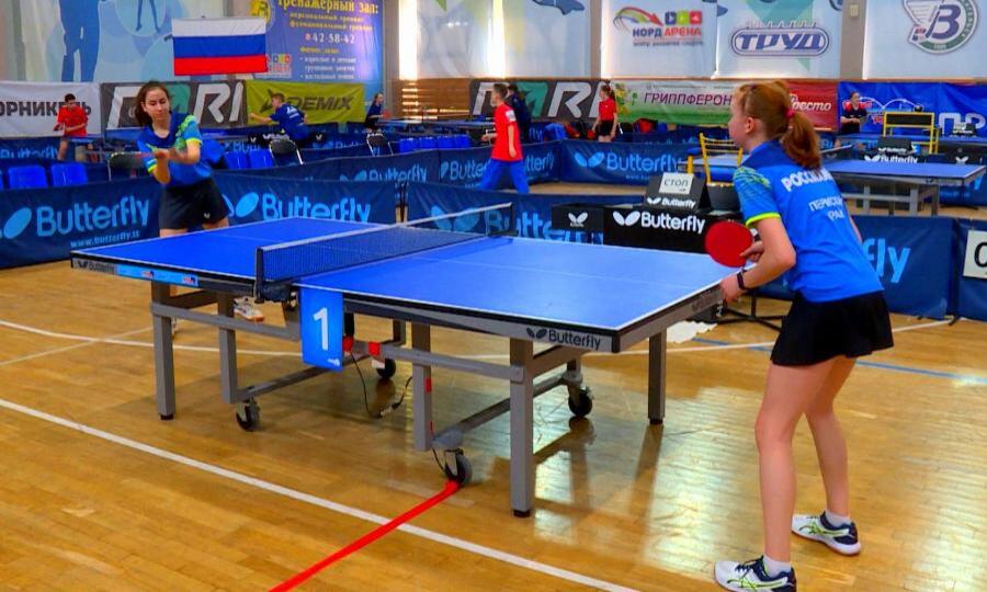Соревнования приурочены к празднованию 100-летия министерства спорта. Всего здесь 15 мужских и 16 женских команд. Сыграны первые матчи, хороших результатов удалось достичь сборной девушек Архангельской области. Они в 8ке лучших. Среди участниц - победительница первенства Северо-Запада Екатерина Рогова из Архангельска. Ей 14, а настольным теннисом занимается уже 7 лет.