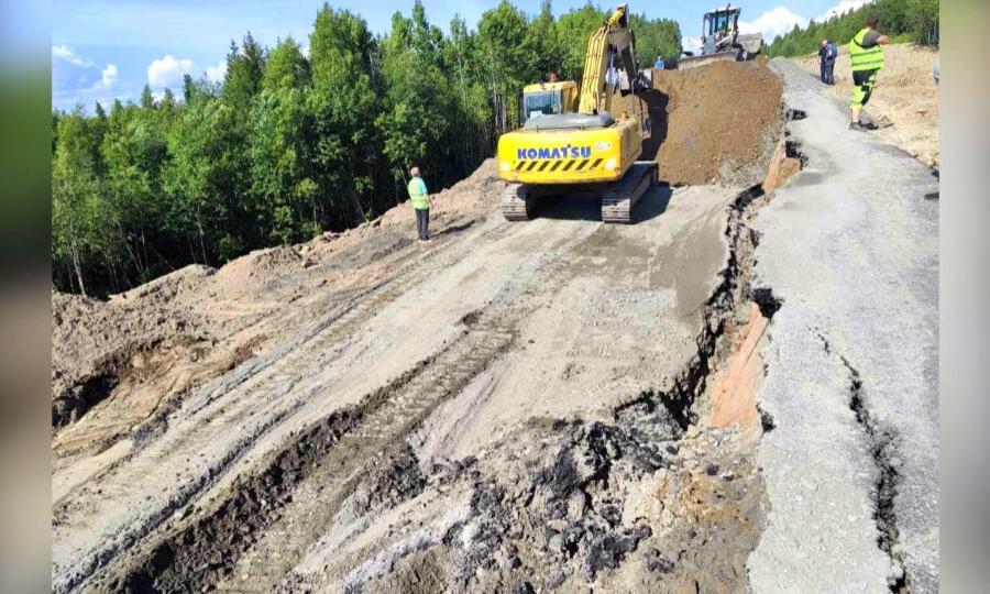 Провал произошел накануне - вблизи деревни Кянды. Это объект капитального ремонта. Работы там стартовали ещё в прошлом году. На место происшествия незамедлительно выдвинулись дорожные службы. Рабочие начали отсыпать поврежденный участок. И даже открыли одну полосу для легкового транспорта. Но дорога снова просела. В составе группы, которая сегодня работает на участке, представители агентства "Архангельскавтодор", подрядчики, проектировщики и изыскатели. По словам специалистов, вероятнее всего провал не связан с ремонтными работами.