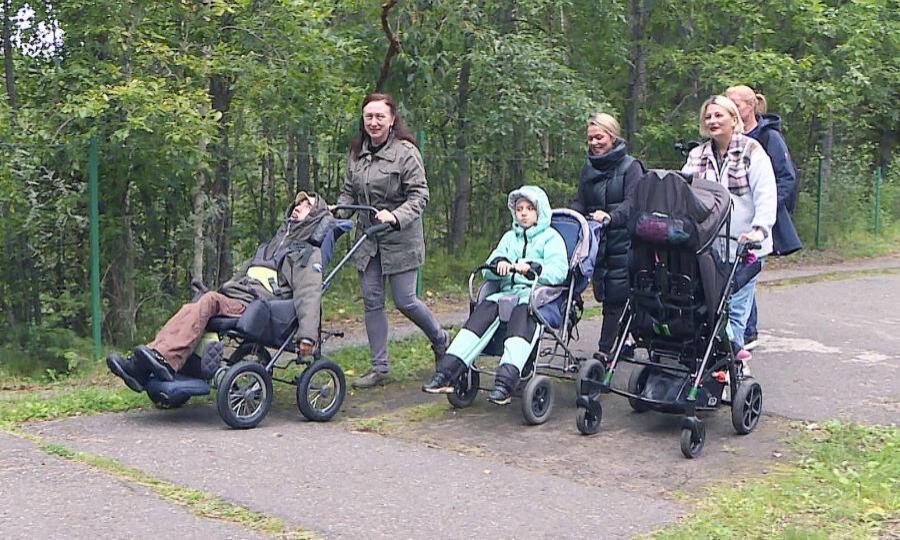 Счастливые и по-настоящему отдохнувшие мамы выходят на прогулку. Это уже их третий день пребывания в санатории. Для отдыха семей с особенными детками здесь созданы все условия.