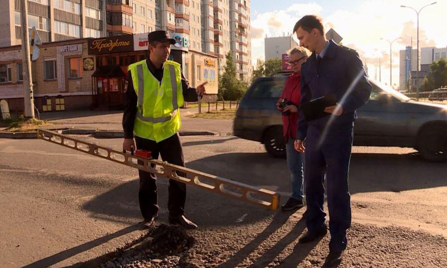 И ширина провала на пересечении улицы Выучейского с проспектом Новгородский в Архангельске тоже более трех метров. Переезжаем на улицу Урицкого. И там яма приличных размеров. В то время, как по ГОСТу просадки на городских дорогах не должны превышать 15 сантиметров в длину, 60 сантиметров в ширину и 5 сантиметров в глубину. Госавтоинспекция регулярно проводит проверку дорожного покрытия.
