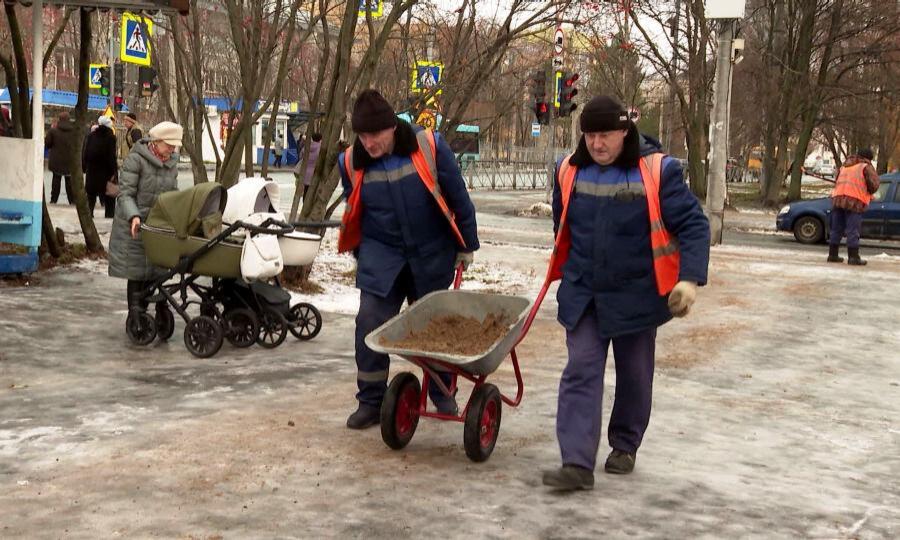 В приоритете пешеходные пути, дороги в поликлиники, детские сады и школы. Там песок дворники распределяют вручную.