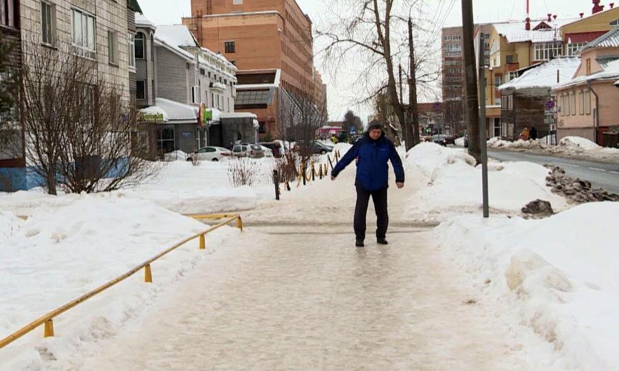 Тяжело было сегодня пройти по улице Карла Маркса. Люди семенили по льду, чтобы не упасть. Кому-то протянули руку помощи. Кому-то повезло не скатиться на проезжую часть.