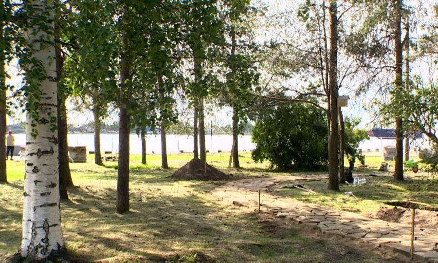 «Завершены предварительные работы по основанию тротуаров, основания все полностью у нас сделаны. Сделана подушка, на сегодняшний день выкладывается у нас плитка, которая называется „плитняк песчаник“. Осталось у нас из работ — установка малых архитектурных форм, их мы ожидаем примерно к середине августа».