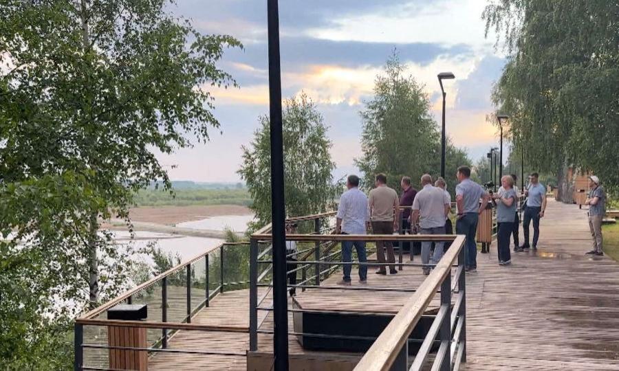 Верхняя Тойма так же, как и Архангельск, находится на берегу Северной Двины. Берег высокий, виды живописные. Логичным здесь было появление собственной набережной. Делают её поэтапно по нацпроекту «Инфраструктура для жизни». Уже есть деревянные мостовые, скамейки-качели, ограждение, урны, видеонаблюдение. В общем, всё, чтобы прямо сейчас можно было полюбоваться и отдохнуть. В этом году будет заасфальтрована и центральная площадь, к которой ведёт прогулочная зона.