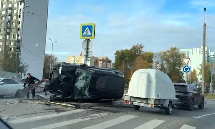 Иномарка двигалась со стороны улицы Розы Люксембург и, уходя от столкновения с впереди движущимся авто, наехала на так называемый островок безопасности. От удара перевернулась. Установлено, что водитель не справился с управлением, при этом был трезв. Его пассажирка 1953 года рождения доставлена в больницу.