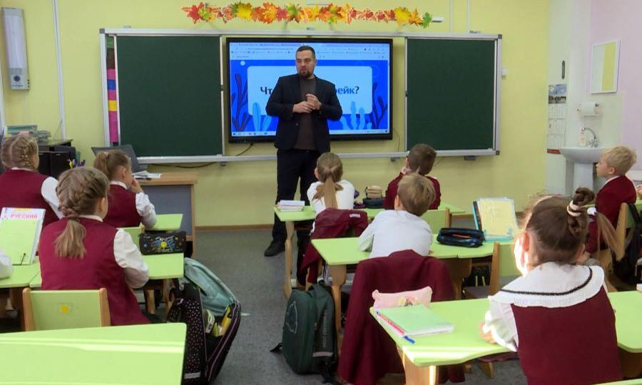 Урок в 3«Б» начинается с разговора о цифровых рисках. Региональный министр связи Павел Окладников в игровой форме рассказывает школьникам про компьютерные вирусы и чем они опасны. Дальше — разговор о дипфейках. Ребята учатся их распознавать, хотя многие о них уже знают. Профилактическую работу проводят и родители.