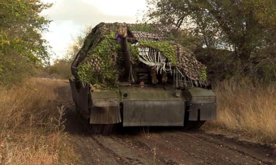 «Под Часовым Яром нашим бойцам приходится выполнять множество боевых задач. И надёжный помощник бойцов нашей 71 гвардейской мотострелковой дивизии — танк Т-80. Машина — грозная, и с дополнительной защитой ей не страшны вражеские дроны».