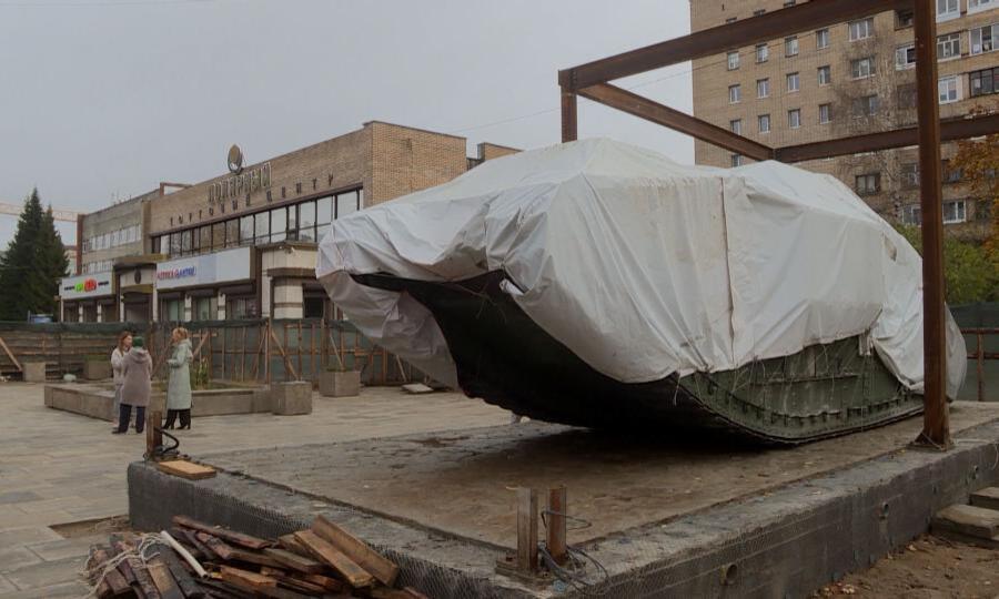 Танк Марк 5 в Архангельске должен был находиться под стеклянным куполом ещё в августе. По проекту здесь предусмотрена подсветка, вентиляция, информационная система. Однако на сегодняшний день - исторический экспонат закрыт баннерами, вокруг забор. В декабре прошлого года за работу взялась архангельская компания Веста. Заказчиком выступил краеведческий музей.
