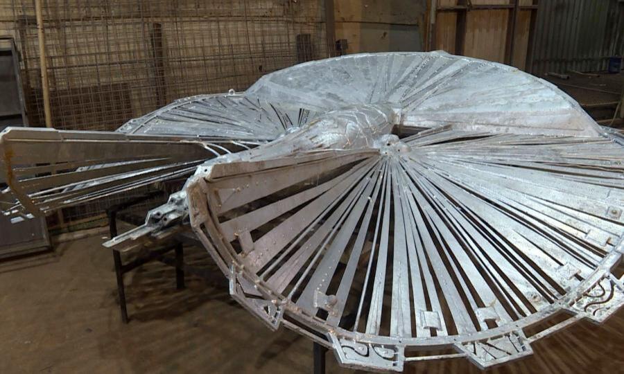 Сейчас скульптура находится в завершающей стадии производства. Для прочности её пропитали горячим цинком. По словам мастера, городу она прослужит не меньше четверти века.