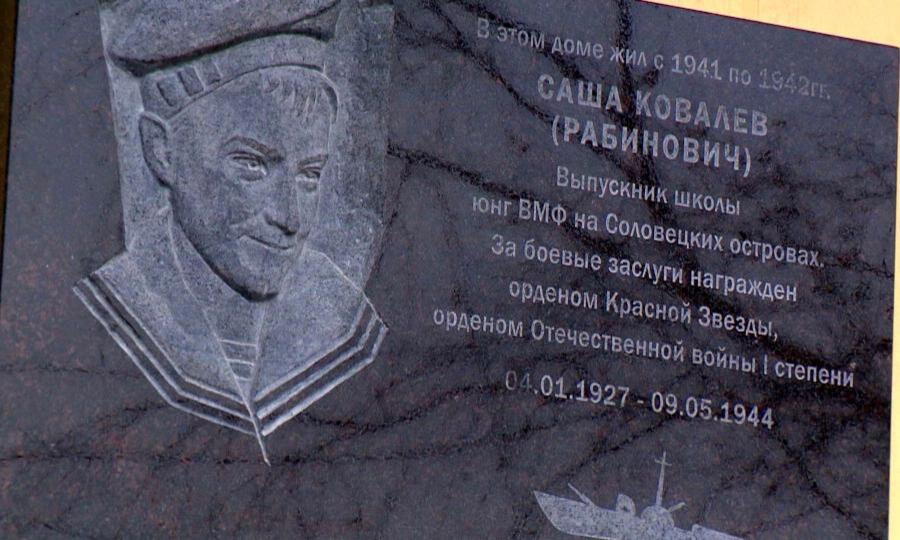 В этом доме на Набережной Северной Двины когда-то жил Саша Ковалёв. Во время Великой Отечественной его семья переехала в Архангельск из Москвы. Мемориальную доску в честь Саши Ковалева открывает София Дрюпина. Она еще со школы начала изучать биографию юнги-героя.