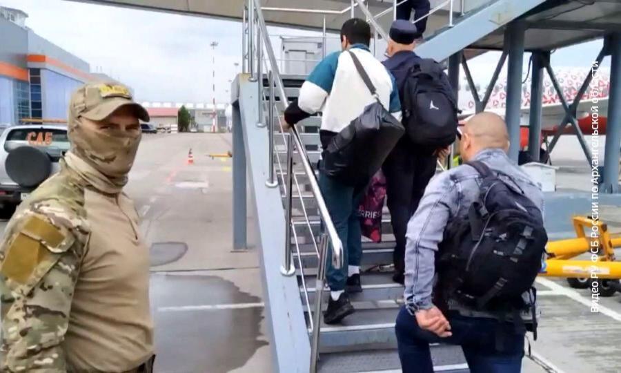 ФСБ России по Архангельской области предоставило видео с места задержания злоумышленников. А также кадры их депортации.