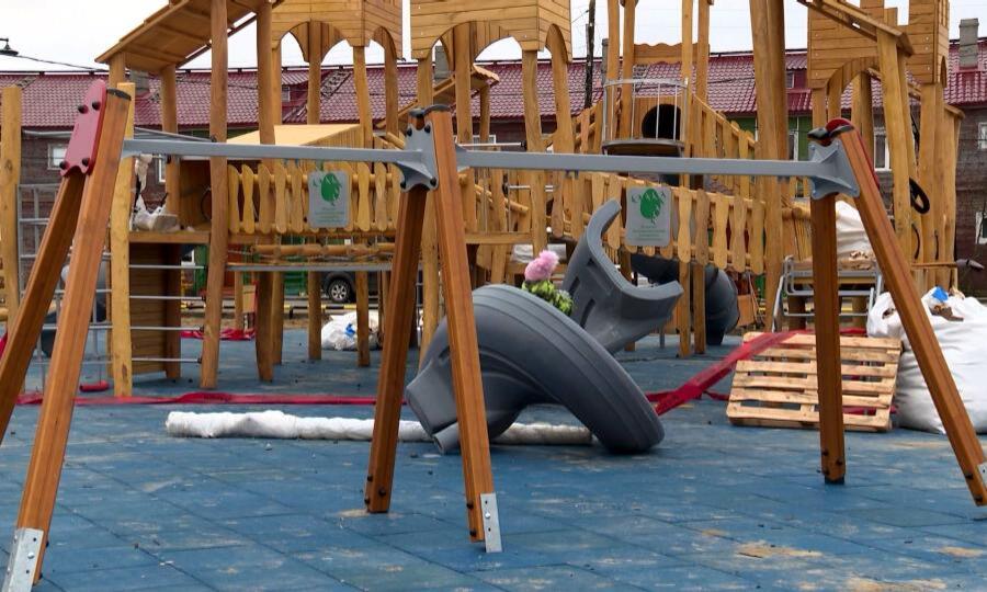 В деревянном городке уже резвятся ребятишки. Под пристальным вниманием жителей и подрядчика. Монтаж площадки всё же не закончен. Проект благоустройства улицы Калмыкова называют одним из самых интересных, который реализуют в этом году в Нарьян-Маре. Во дворе появилось несколько зон: для отдыха, игр и занятий физкультурой.