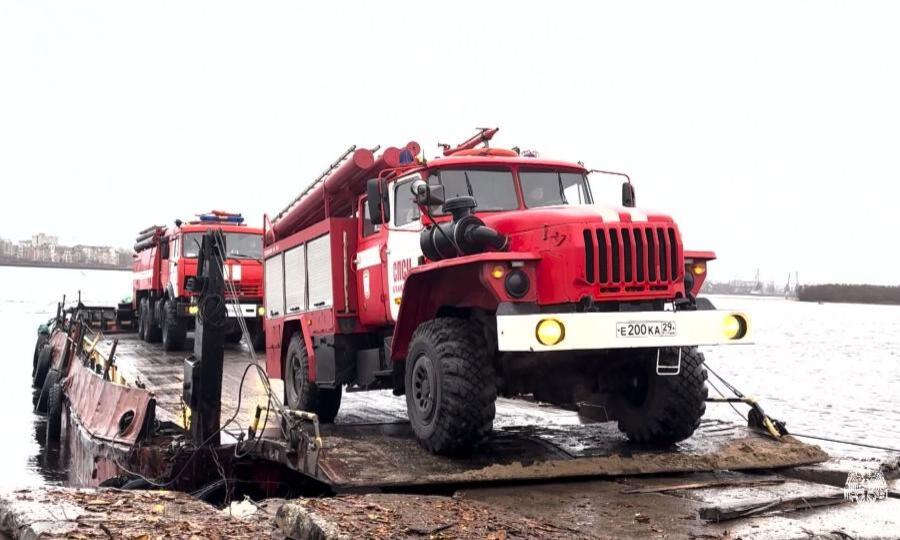 В переброске личного состава приняли участие сотрудники Центра ГИМС. Оперативно прибывшие на паромной переправе пожарные подразделения Главного управления МЧС России по Архангельской области подключились к тушению условного пожара. Учения прошли успешно.
