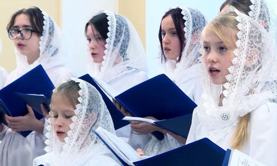 Восхваление Архангелу Михаилу звучит из уст солистов хора православного отделения Первой детской музыкальной школы имени Казакова. Они — участники фестиваля «Архангельский глас». Праздника духовных песнопений клиросных хоров. В этом году их выступает пять.