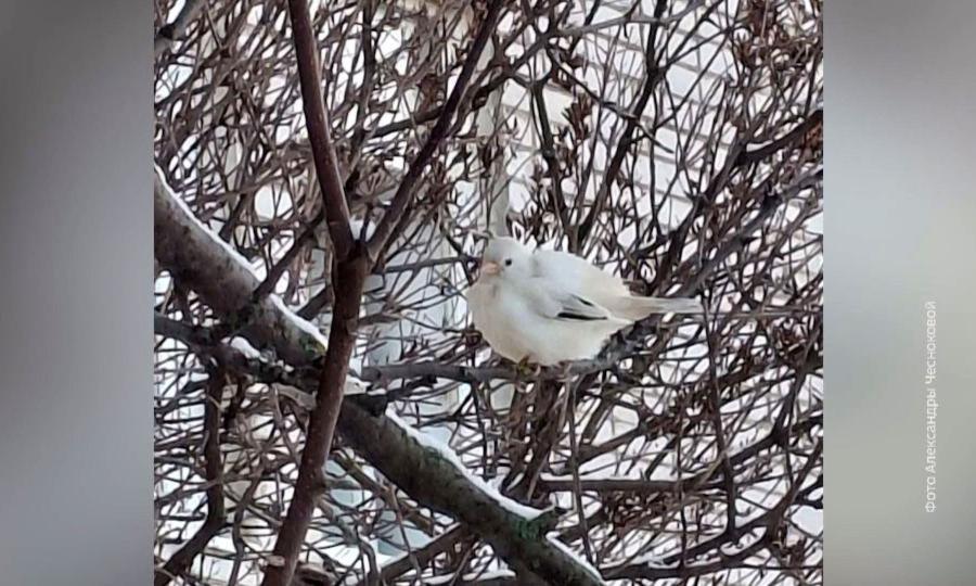 Но, приглядевшись, поняли, что белая птица похожа на воробья. Пернатый резвился среди своих собратьев, прыгал с ветки на ветку — на радость горожанам. Такой окрас — редкое явление. По словам специалистов, это результат мутации.