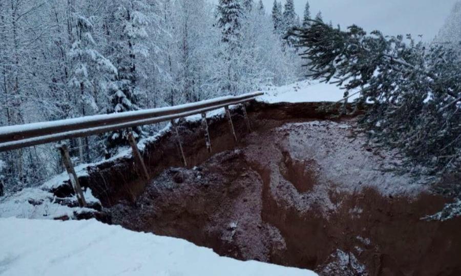 «Это произошло на участке, где ещё гравийное покрытие, этот участок, он входит в ремонты, которые у нас начались в этом году. Но до этого участка ещё работы не дошли, они будут проводиться где-то в следующем году. Размыв, связан он с тем, что пришли талые воды, водопропускная труба просто не справилась с этим потоком, что и привело к данной ситуации. Там находятся сейчас на месте один экскаватор, 10 самосвалов подвозят материал, грейдер и каток, который разравнивает данный материал и уплотняет. К 18 часам мы планируем открыть движение транспорта общей массой до 3,5 тонн по одной полосе, то есть реверсивное движение».