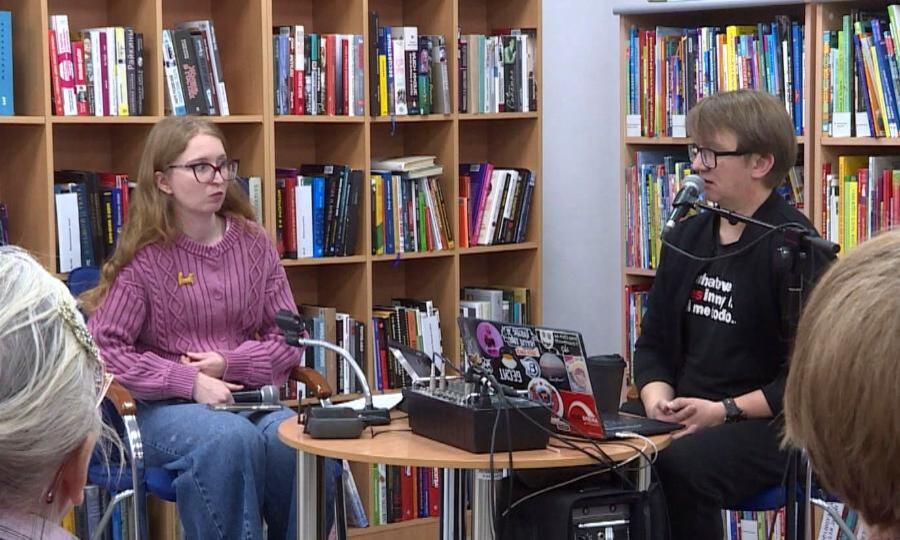 Встреча прошла в архангельской областной библиотеке имени Добролюбова благодаря проекту «Светлые люди». Наш коллега рассказал, в чём разница работы на прямых эфирах, творческих выездах и концертах. Примеры — наглядные. В помощь — микрофон и цифровой микшерный пульт. На телевидении Александр работает около 10 лет, но такая встреча для него была первой и поэтому — немного волнительной.