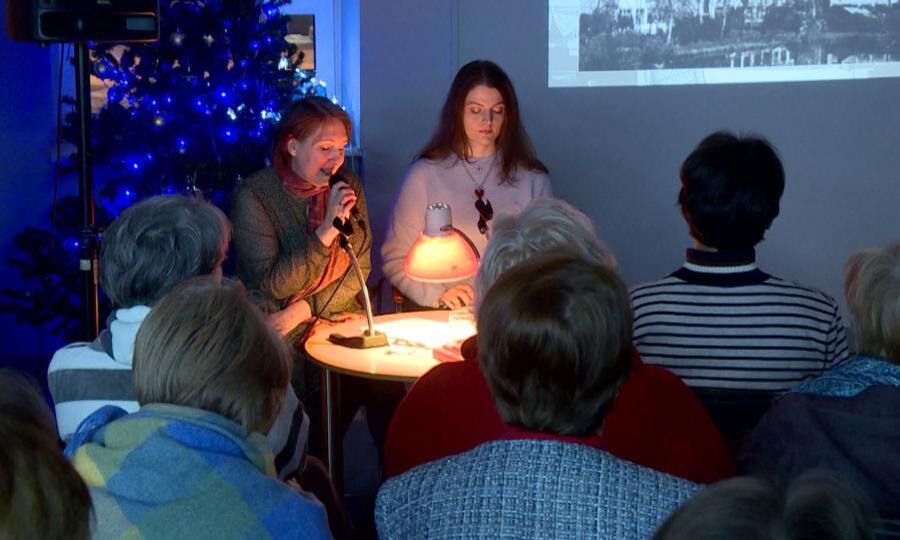 Приглушенный свет, негромкая музыка и неторопливые голоса ведущих, рассказывающие о традициях празднования Рождества и Нового года в начале 20 века. В областной библиотеке звучит история Архангельска. Проводником в прошлое стала книга нашей землячки Евгении Фрезер «Дом над Двиной».