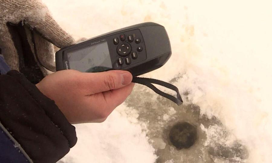 Координаты уже обследованного места отмечают с помощью навигатора. В марте важно провести обследование в этой же самой точке. Но техника иногда даёт погрешность. Поэтому в арсенале специалистов-исследователей есть простая ветка. Чтобы в следующий раз точно не промахнуться ледобуром.