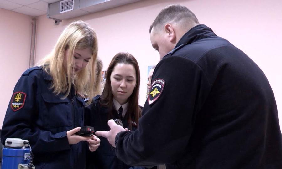 Вначале ребятам рассказали о специальной технике, которая помогает полицейским раскрывать преступления: видеорегистраторы, планшеты, сервисы с базами данных. После студенты сами поработали в дактилоскопической лаборатории.
