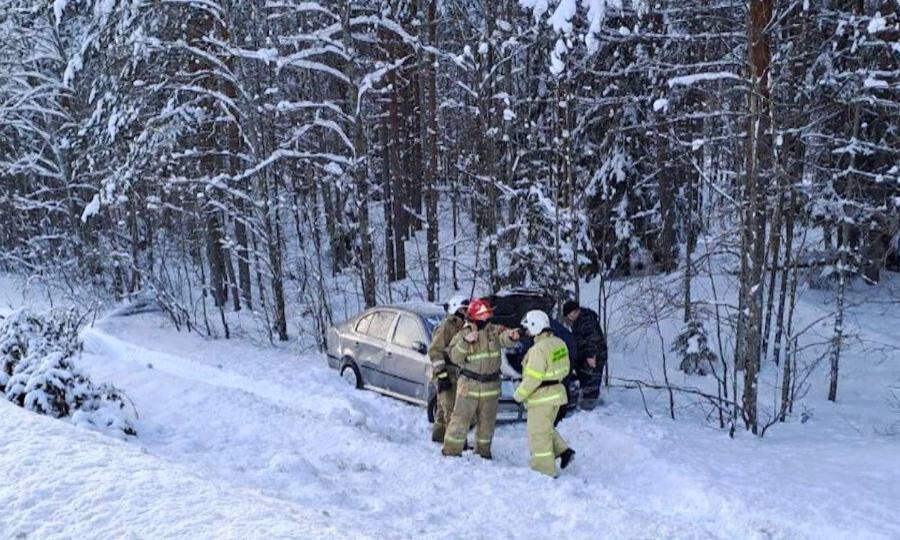 По предварительной информации, водитель автомобиля «Skoda Octavia» при обгоне не справился с управлением, съехал в кювет и спровоцировал съезд с трассы другого автомобиля, «Nissan Almera».