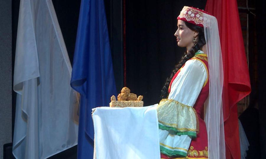 Молодые артисты свои выступления посвятили сразу двум событиям: Году единства народов России и — объявленному в нашем регионе — Году культуры Русского Севера. То самое единство, говорят участники, это — прежде всего мирный союз конфессий. Зримое воплощение этой мысли — на сцене: гостей приветствуют русским хлебом-солью и татарским чак-чаком.
