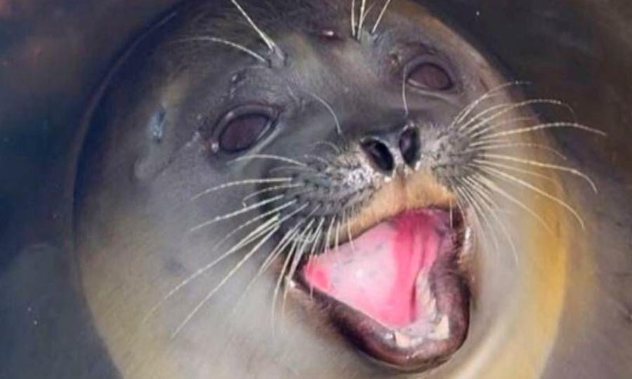 Это — специальная рейка с делениями для измерения уровня воды. От замерзания лунку защищает железный короб с крышкой и галогенная лампа, которая не только освещает пространство, но и греет. В этом домике нерпа и нашла для себя укромное место для отдыха. Метеорологи Северного УГМС говорят, за многие годы работы в Арктике такой случай у них — впервые. Самая первая встреча с кольчатой нерпой произошла ещё 9 января. С тех пор она часто приплывает к полярникам. Иногда получает угощение — немного трески. Сотрудники станции даже придумали ей имя — Звёздочка.