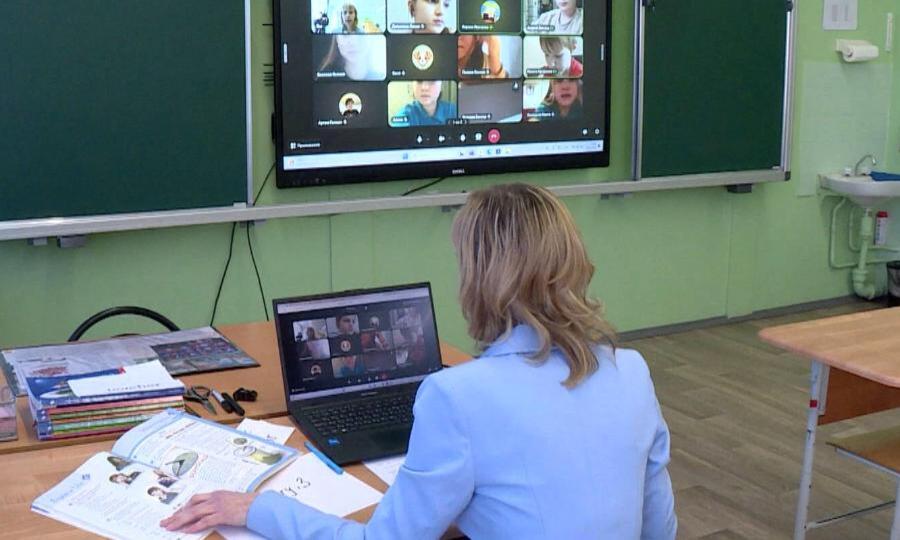 У 5 «А» урок английского языка, но в кабинете непривычно пусто и тихо. Здесь только учитель. С детьми он общается по видеосвязи. Этот класс ушёл на дистанционку самым первым в школе. Из 33 человек с температурой, кашлем и насморком слегли 11.