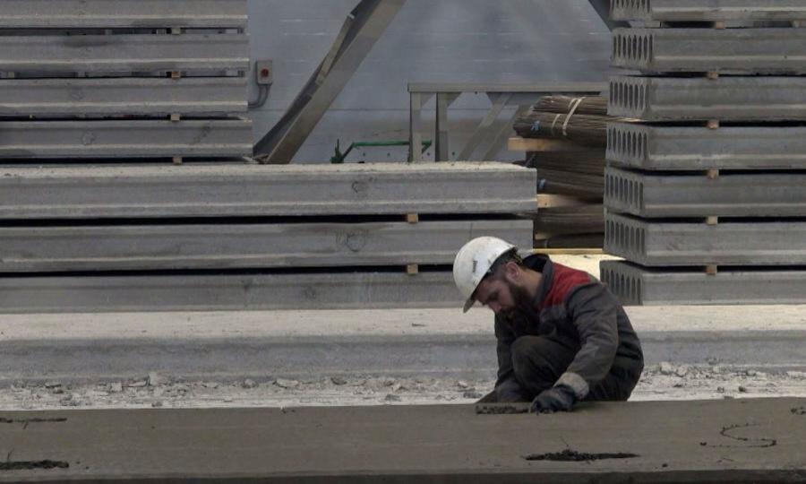 Эта стометровая плита, возможно, будущий потолок ни одной квартиры. Здесь такие плиты отливают, а потом разрезают на изделия поменьше. Трудится всего 8 человек, но потери трудового времени и ресурсов есть. Сейчас на предприятии готовятся в пилотном режиме запустить проект «Бережливое производство».