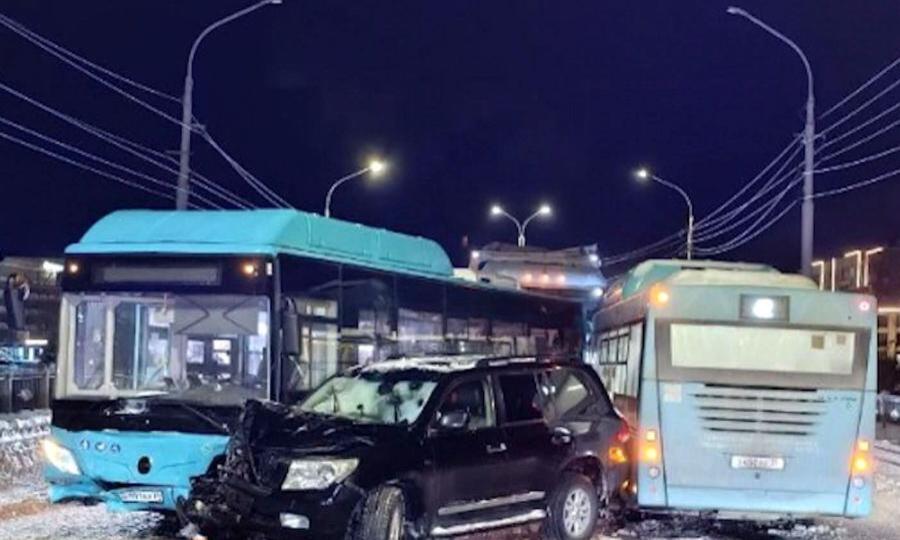 По предварительным данным, водитель автобуса, двигаясь по мосту без пассажиров, не справился с управлением и выехал на полосу встречного движения. Где столкнулся с внедорожником. В результате аварии пострадала несовершеннолетняя пассажирка автомобиля. Девочка получила ушибы, медицинскую помощь ей оказали на месте. И следом там же произошла вторая авария. Предварительно, большегруз, пытаясь объехать первое ДТП, врезался в ещё один автобус. Пострадавших нет.