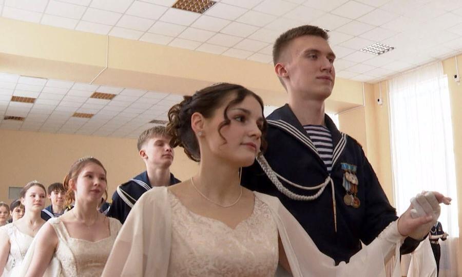 Зал кадетского корпуса на несколько часов превратился в паркетную площадку 19 века. Юноши в морской форме и девушки в бальных платьях кружились в классических танцах. Но главная интрига вечера — выбор короля и королевы бала.