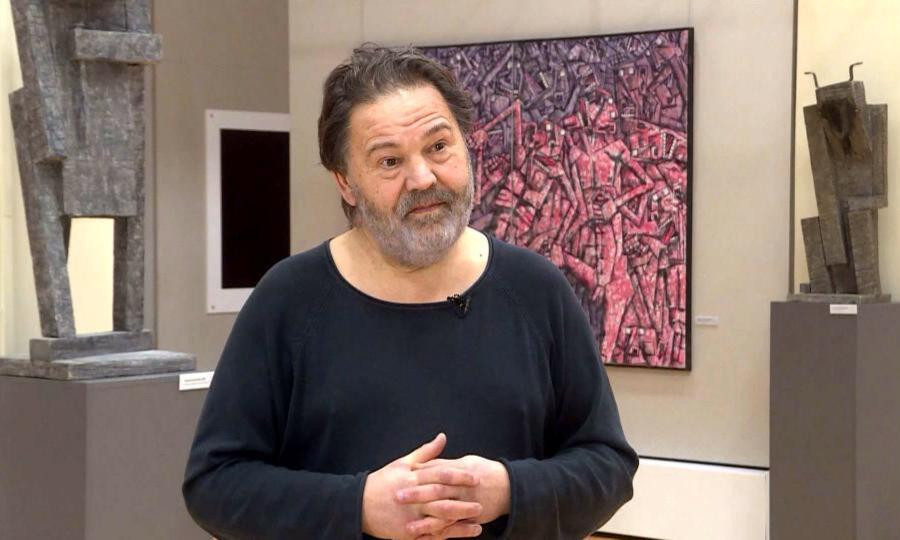 Выставка работает в Музее изобразительных искусств. Встретились с Дмитрием Трубиным в музее возле его картин.