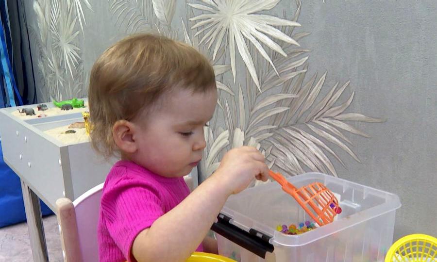 В комнате ребята работают не только с мягким песочным материалом, но также и с твёрдым. Вот мы видим здесь разные заготовки, в которых рис, бобы, фасоль. И самое любимое у ребят это вот такие шарики. Делать с ними можно всё что угодно: трогать, разглядывать, различать цвета. Ну и самое главное, что всё это работает на развитие той самой мелкой моторики. Сегодня в центре медицинскую и психолого-педагогическую помощь получают больше 70 детей. Только за первые месяцы года реабилитацию прошли 250 малышей. Тем важнее адресная поддержка меценатов.