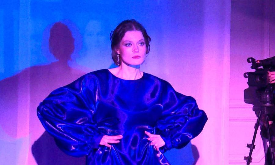 И вот каким «увидела» «голос» костюма бабочки дизайнер Анна Злотко. Именно она работала над коллекцией. А костюм Ирины Мезенцевой из спектакля «Человек для любой поры» из простого чёрного атласного платья превратился в струящийся наряд.