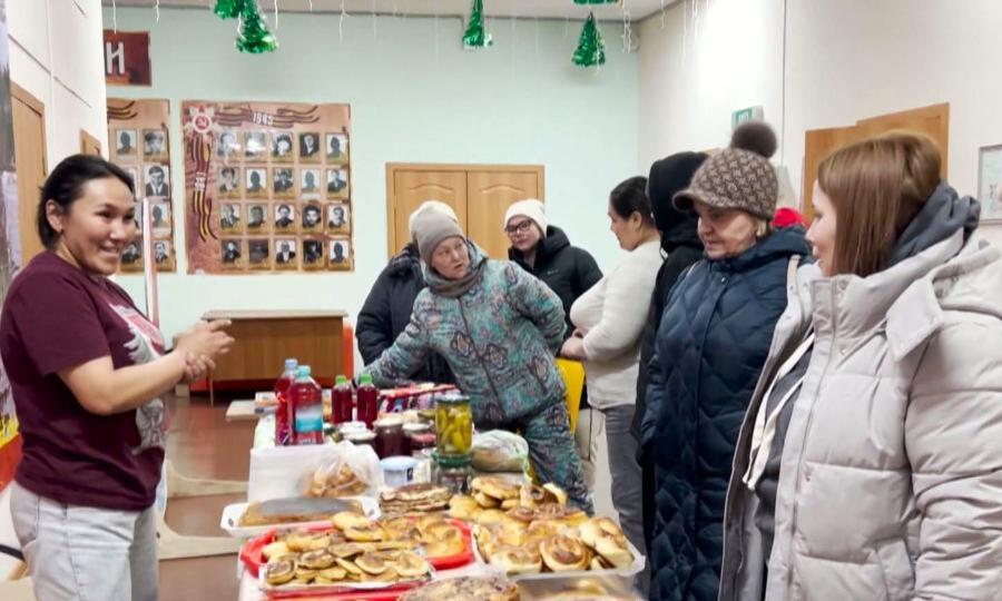 Аппетитная домашняя выпечка на столе не задерживается. Шаньги, кулебяки, лепёшки приготовили жители оленеводческого посёлка. Принесли из погребов соленья, связали памятные сувениры — средства, собранные от продажи решили отдать на нужды СВО.