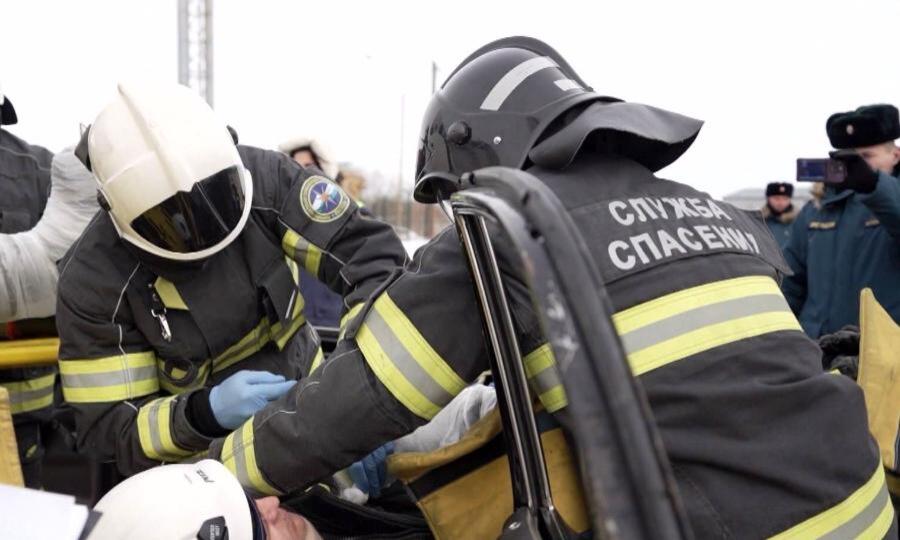 Один из спасателей залезает в салон и контролирует ситуацию изнутри. Условно пострадавшим накладывают фиксаторы на шею и оперативно разбирают автомобиль. Когда доступ обеспечен, участники начинают оказывать первую медицинскую помощь.